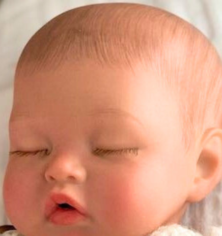 This little dreamboat is 16 inches long (43 cm) and weighs a little over 4 pounds. Leo comes dressed in white knit overalls with matching hat. His accessories include a pacifier, a baby bottle, a white knit teddy bear, and a white blanket.